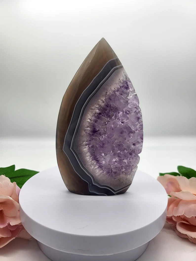 Natural Druzy Amethyst Agate Flame